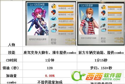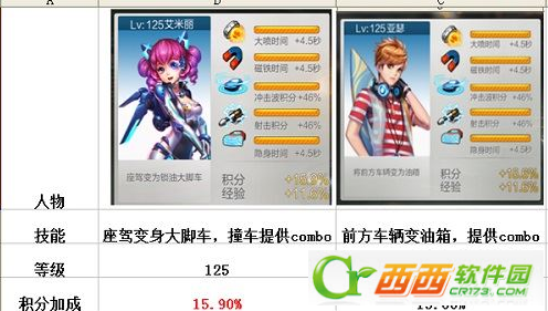 艾米丽和亚瑟的属性对比见表一。从表一可以看出两位车手满级属性几乎是没有差别,除了节能不一样外,其他可以说是一模一样。唯一区别是:艾米丽积分加成15.9%,亚瑟积分加成15.6%。可以忽略不计。