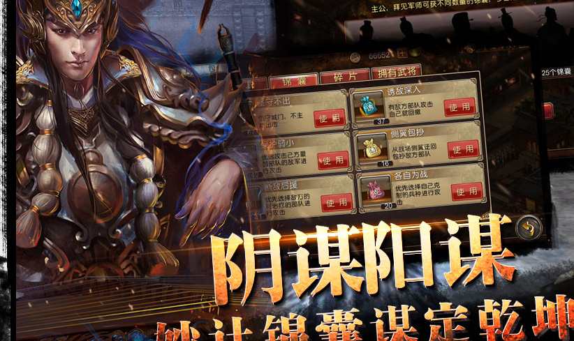 传统卡牌在对战时缺乏变化,虽然部分产品加入了“位置”、“技能释放”但胜负结果依然由阵容战力决定,玩家与玩家之间的对决即是烧钱抽卡的比拼。而《军师救我》则将策略玩法挖掘极致:锦囊系统布置战术;不同兵种相互克制;阵法完全自由设定;主动技能手动控制;兵种科技自由攀升,还可以根据战术选择武将被动技能(想象下带加速技能的骑兵奇袭),总共多达4千种战术组合提供无穷对战可能。一旦上手即可感受到“运筹帷幄,决胜千里”的策略游戏乐趣精髓,玩家可以做“妙计安天下”的贤良军师,也可以是“兵者诡道,宁负天下”的乱世奸雄。