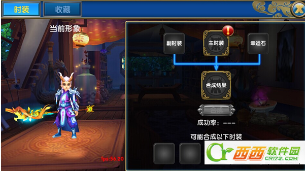 玩家在“主时装”区域内放入一件时装,并在“副时装”区域内放入一件与主时装种类、等阶相同的时装。若玩家对当前合成成功率不满意,可以选择性的放入幸运石来提高合成成功率。