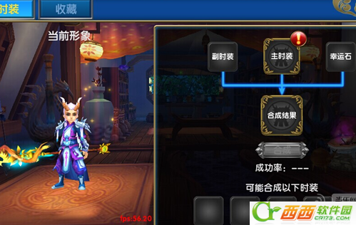 玩家在“主时装”区域内放入一件时装,并在“副时装”区域内放入一件与主时装种类、等阶相同的时装。若玩家对当前合成成功率不满意,可以选择性的放入幸运石来提高合成成功率。