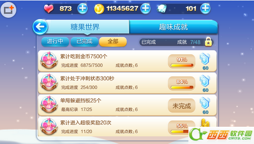 当然小编列举的可不是糖果世界的全部成就,包括银币成就、金币成就这些都还没有计算在内,毕竟48个成就点,怎么也要有20轮左右的成就任务吧。