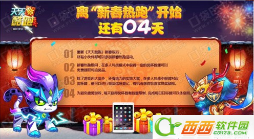 天天酷跑不知不觉陪伴大家来到了2月份,全新的2月份,天天酷跑将会上线全新的春节版本,在天天酷跑春节版中有着新春热跑大赛活动, 玩家们参与新春热跑大赛将会获得丰厚的奖励,不只是游戏中的奖励,还有实物奖励哦,具体详情,来看看小编为大家带来的介绍吧!