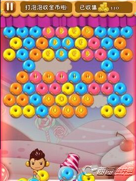 由于激发闪电泡技能的甜甜圈都有一个典型的标志——内圈含有一个金币,所以我们就要利用这一点,首先就要选中某个金币最多的位置,并且选择同一颜色最多的泡泡。考虑到游戏的金币模式时间有限,所以我们的注意力一定要高度集中,及时出击才能获得更多的金币。