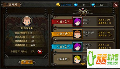 各自为阵,生死搏斗。实时记录排名积分,击杀情况。