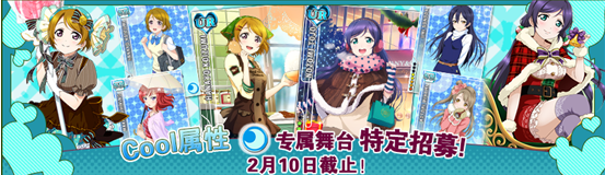 【时间】2/7 0点 - 2/10 14点,特定招收μ's的Cool属性社员。