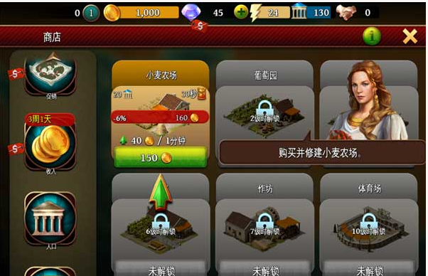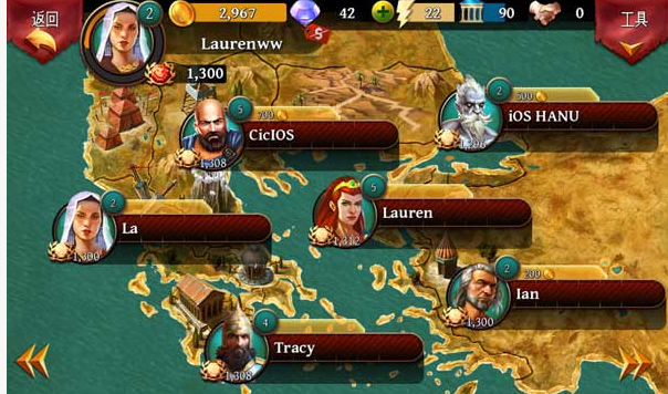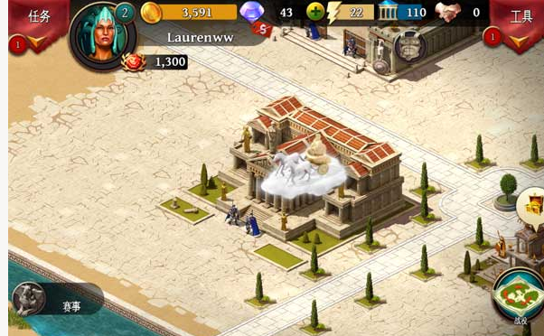 游戏玩法分为经营部分和战斗部分两部分。其中在经营方面,玩家可以按任务的要求,在可用的土地上建造农庄、神殿、练兵场,玩家可以在这些建筑中收获金币、等级、精力、钻石等游戏必备的元素,尤其是练兵场,这可是增加你城邦兵力、兵种的关键,而兵力和他们的战斗力则是为了后面战斗模式准备的。