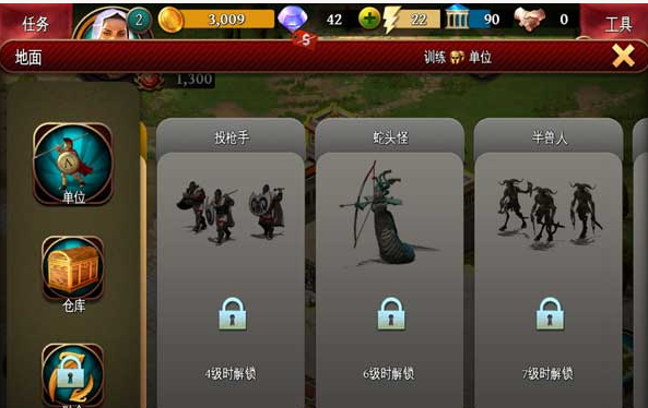 随着等级提升,玩家还能逐步解锁投枪兵、弓箭手、半兽人、蛇头怪、女术士、斯巴达勇士等兵种,战斗力当然也会逐步提升。