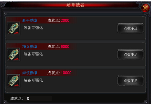 点击“兑换点数”即可传送至NPC勋章使者处,点击“兑换”领取相应的勋章。