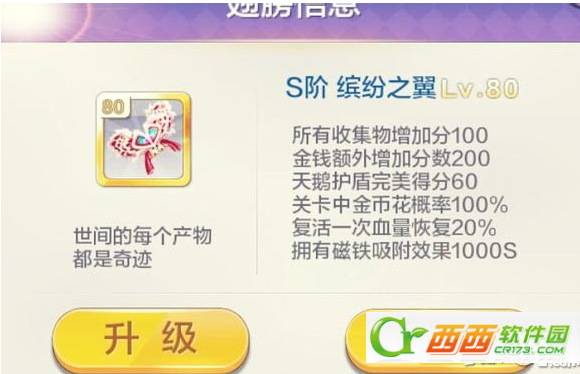 那么为什么不选择战斗之翼呢?因为对于可以增加收集物得分或者像吸血艾拉这样的长跑角色来说。缤纷之翼的得分能力是要远远胜过战斗之翼的。
