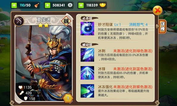 夏侯渊攻击属性值非常高,并且还可带来冰冻效果,控场能力非常强~ 随着技能等级升级,冰冻成功率会大大提升,夏侯渊的培养更加偏向在技能方面的提升,相信好好培养一定会是控场DPS第一人!
