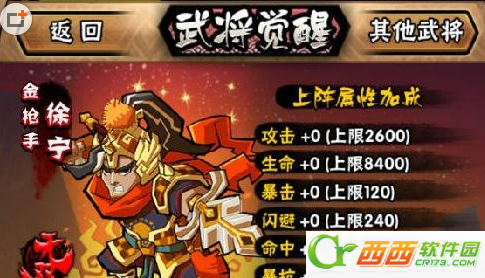 武将觉醒可提高的属性有攻击、生命、暴击、闪避、命中和爆抗,而且每个武将每个属性上限都是不同的。觉醒属性上限跟武将的职业相关,正如他们职业一样,战将是攻击的属性更高,坦克是生命更高。属性上限还跟武将等级、转生有关,等级和转生越高上限越高。