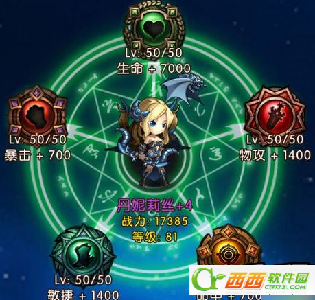 虽然技能描述中没有,但我实际测试结果,减攻效果大约减少攻击33%左右(参考为14章最后一关的恶魔督军,正常打无头造成伤害大约4200左右,龙女减攻后为2800左右),这个减攻效果还是相当变态的。而我称赞此技能的是它的机制,精确瞄准敌方攻击最高的单位。