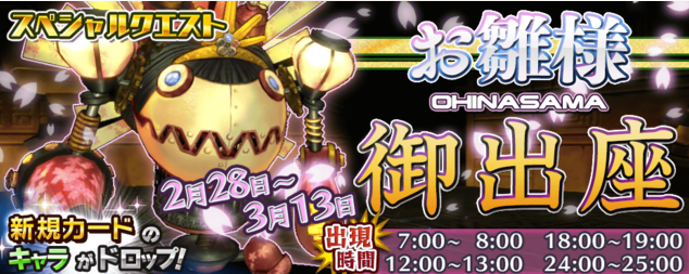 雏扭蛋登场时间2015年2月28日(土)0:00~3月20日(金)23:59