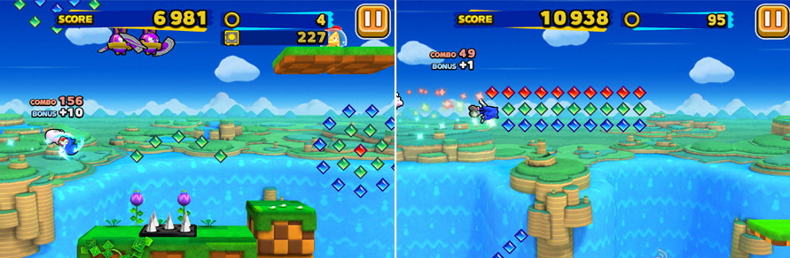 跑酷是这种游戏最重要的核心要素,而跑酷也是世嘉想表达的一个重中之重,配合多彩的关卡带来的极致爽快跑酷体验无疑是这款游戏最迷人的地方,再加上索尼克系列传统摇滚音乐的添砖加瓦,让游戏带给玩家的刺激感越发强烈,适应移动平台的自动跑动,只需要玩家操作索尼克的跳跃就可以轻松达成飞一般的享受,三段跳的引入让索尼克的机动性更高,玩家的想象力也可以得到充分的发散,无论你走哪条路全凭个人发挥,很多时候都取决于玩家的瞬间抉择,当然游戏的设计不会让你钻进一条死胡同,条条道路通罗马说的就是这样的情况。