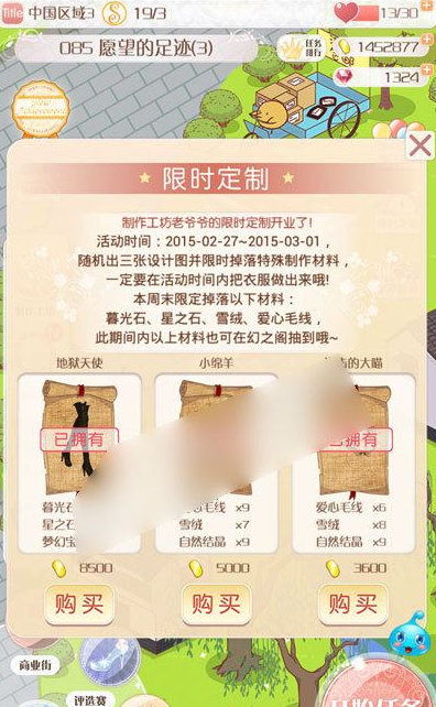 pps:虽然星之石限时材料,但是下次限时定制活动出现的制作图还有可能会出现这种材料,在之前的爱心毛线、雪绒材料等都出现过很多期,所以玩家朋友们也不需要那么担心哟!