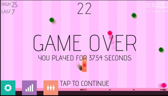 不过大家别被它简单易上手人畜无害的外表蒙蔽,实际上操作起来可能很快就 Game Over 了,因为小方块只有跳到刚刚好的位置回击小球,高或低了碰到小球都会玩完。
