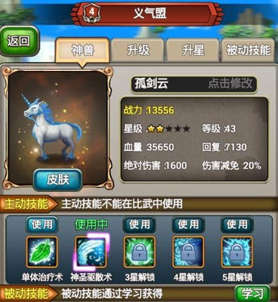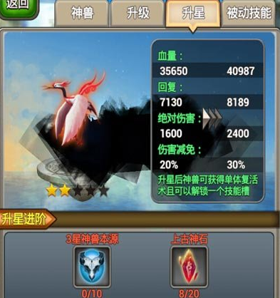作为神兽,可是大胃王,最喜欢吃经验丹来修炼,除此之外还可以通过吞噬道具,以便提升自身等级。不过此法有一定的局限性,等级要小于主人的等级,所以若想使神兽实力有突飞猛进,那就要努力升星,提高神兽的实力。小编在这里偷偷的告诉你,“神兽本源”是升星必不可少的物品,所以快去收集吧!升星不光可以增加神兽的属性,每升一星都将开启神兽的一个主动和增加一个被动技能栏,大大提高自己的战斗实力。