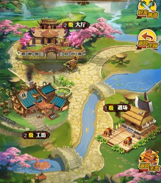 庄园系统主要由三大建筑构成,分别是:大厅、工坊以及道场。