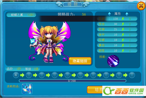 《热血冒险岛》中,当人物等级达到24级时机会开启1阶的翅膀,翅膀获取后翅膀的外观就会在游戏内显示在角色身上。萌萌哒小萝莉配上华丽的翅膀,足够你在游戏中赚足回头率。