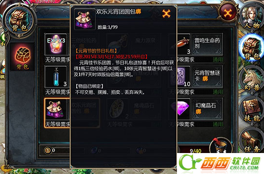 【活动一】元宵团圆包3月5日7:30至23:59期间,等级到达30级的冒险者可前往元宵团圆使者·苏菲亚处领取1个欢乐元宵团圆包——这个礼包可是承载了苏菲亚对所有冒险者的元宵祝福哦!(友情提示:欢乐元宵团圆包仅限3月5日7:30至23:59期间开启,过期可就无法使用了哟!)