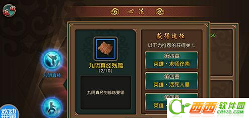 当玩家等级达到25级可自动解锁开启心法系统。玩家强化不同的心法则可以获得不同的属性加成,不同的心法强化所需要的材料也是不同的。至于强化材料玩家大可不必担心,通过游戏中的各个英雄副本即可掉落,完全免费,简直就是平民玩家的福音啊,各位大侠只要勤劳的多刷副本就有希望成为明日的武林霸主。
