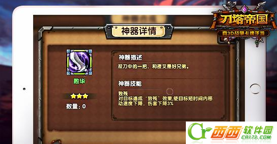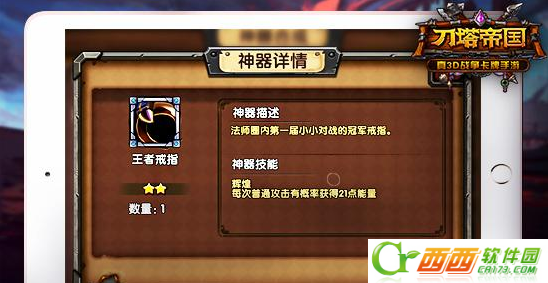 《刀塔帝国》神器能给英雄提供额外一个特殊技能,玩家可以根据英雄特性给予其佩带合适的神器,进一步强化英雄实力。在游戏前期,玩家应尽量争取为每名英雄都装备上神器,这将给未来过图之路提供非常大的帮助。