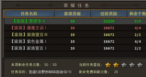 对于家族环荣耀任务,就介绍到这里了,玩家们努力的刷星升经验得奖励,早日冲上排行榜吧。