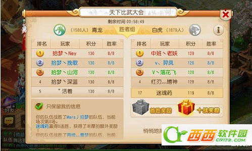 (1)在开始你的比武大会之旅的时候,你首先要明白自己要在其中干什么——如果你的目的是争一个好名次,那么找队友、准备好足够的三级药和酒水是必要的。这里需要注意:如果你在比武大会开始前就找到了固定队,那么你们在一起进入场地时会被自动分配到同一个组别中,所以一支固定队能让你在与不少野队对战时获得足够优势。