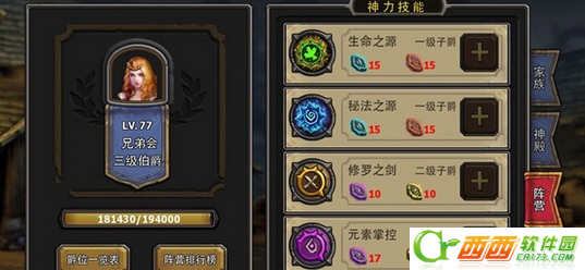 阵营技能在个人属性中的加成占到15%左右,有时间的话不妨多去刷一下。优先度可以参考攻击、血量、防御、格挡、暴击和魔法的顺序。刷神石的神殿需求的都是很一般的绿装,刷高级单人本都会掉,另外魔法书和精锐勋章这两个货很缺,有两个好地方可以刷,单人本的3-1和4-2,刷精英,这两关都是关底三个boss可以有几率掉出三份。
