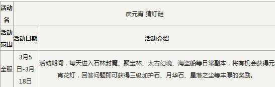 活动期间内每天进入石林封魔、聚宝林、太古幻境、海盗船等日常副本,即可参与此次猜灯谜活动,不仅可以获得战力小棉袄——三级强化石,还可以获得各位英雄日夜思念的符文必备两件套“月华石、星落之尘“!