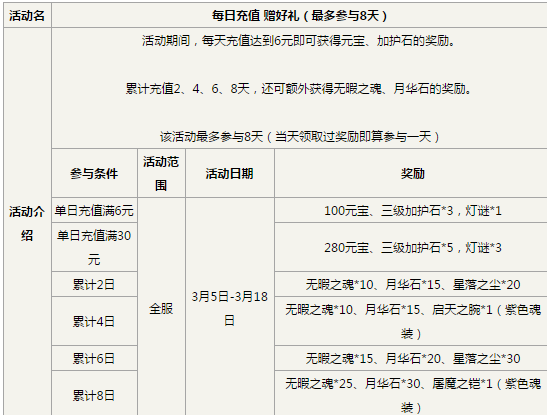 活动三、每日充值超值返利,累充可得无暇之魂!