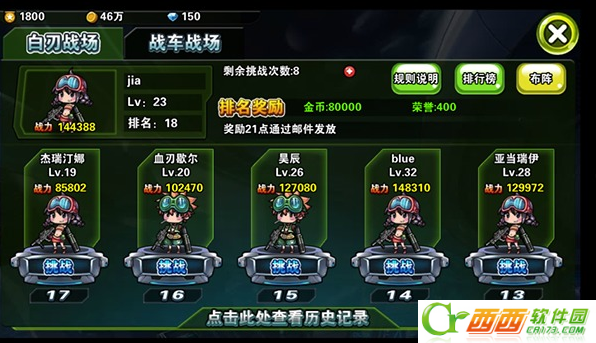 如果一切准备就绪,选择对手吧,看谁不顺眼,看哪个数字好看,点,打!记得战斗力不要跨度太大,不然就要被爆打了。