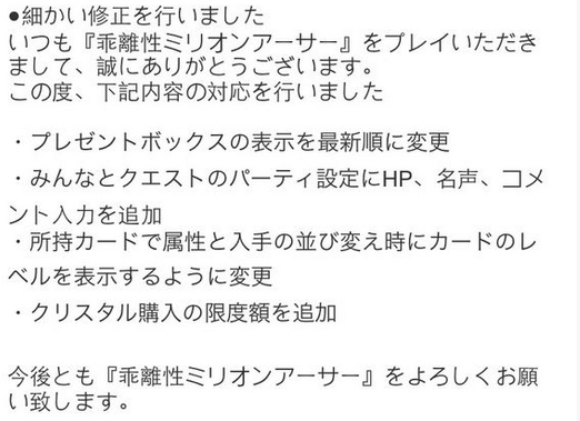 感谢你一直使用【乖离性百万亚瑟王】,本次更新对应以下内容: