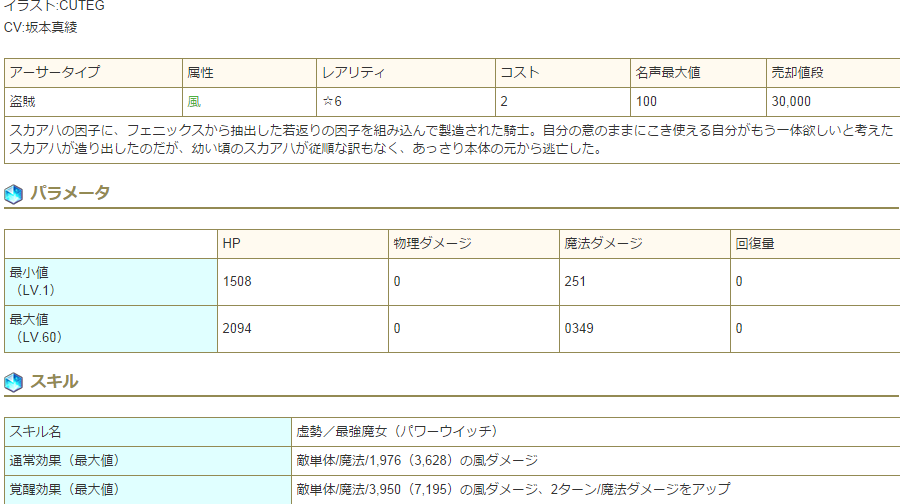 【点评】这是3魔女其中之一,萝莉教师!?这张卡与【ロマン請負人】争杯型パーシヴァル相比略输一筹,足球香菜的魔攻buff约1万而这张的魔攻buff约7000上下,不过不得不说的是2cost比起足球香菜要更容易搭配其他卡出手,2094的血量对少血的盗贼来讲非常有用,但是这张卡是风属性,如果打火属性的副本作用可能就会相对小,不过最要紧的是卡面!!卡面啊!!!你怎么能不拥有,赶快去磕磕磕吧!