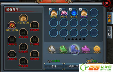 真气是通过消耗银两来修炼的特殊装备,可提升角色基础属性,真气分为多个种类和品质,以颜色来区分品质,分别对应不同的角色属性。