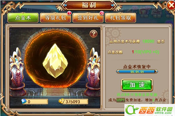 4. 升级VIP,可大量增加使用点金的次数,每天最多可以使用点金术100次哦!