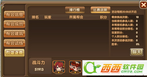 2.活动期间您有十次报名参战机会,单场战斗无论胜负均可获得积分、帮贡、金币。