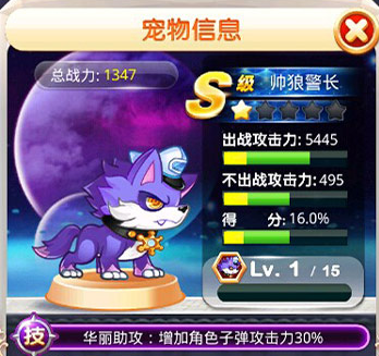 综合点评:虽然帅狼警长的数值属性在S级宠物中不算最高,但是技能很给力!有需要的小伙伴看过来啦!