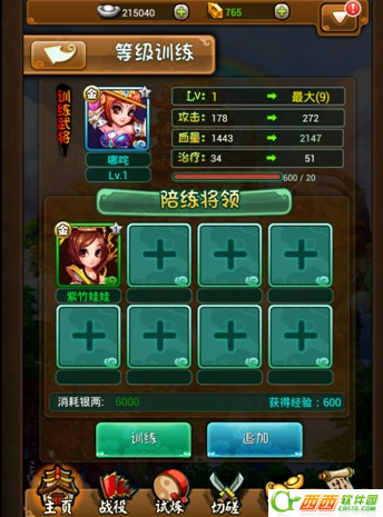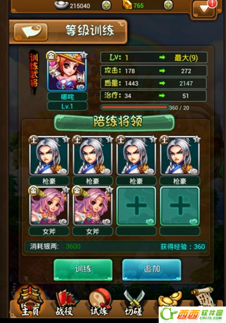 1、训练选择目标武将和陪练武将,所有的陪练武将都会转化成为目标武将的经验而被消耗掉。