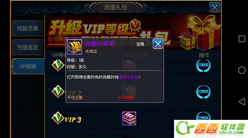 ③很多悠悠发现VIP2级是有时装送的,要特别注意。送的时装其实只有7天,炫酷时装箱上面写的永久只是箱子的时间,并不是里面时装的时间哦。