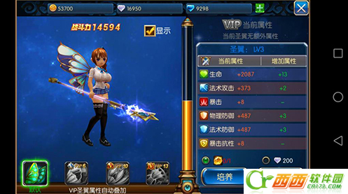 这个翅膀不但是绚丽也有属性的增加,VIP的翅膀属性可以叠加。