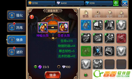 ③继承,小喵特意尝试了这个继承,效果看图吧。原本都是紫色的属性继承过来全部变成绿色。其实属性是没变的,但是装备的提升属性的上限已经变化。