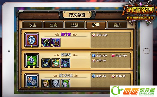 《刀塔帝国》符文系统优化了以往需要英雄在战斗阵容中才能触发特效的限制,现在玩家只需拥有英雄即可激活符文并在战斗准备界面中选择使用,更加简单便捷。