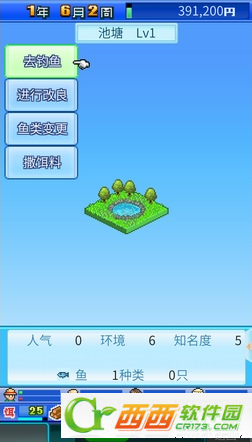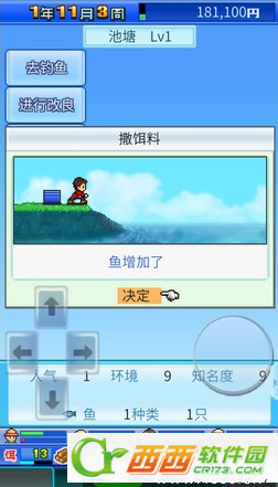 2.有水了接下来就是投放饵料吸引鱼进入啦,点击该水滨,选择撒饵料选项后,会看到鱼增加了。