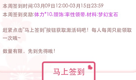 暖粉只要点马上签到获取兑换码,在暖暖的登陆界面输入兑换码,就可以兑换到这些礼物了哦。快关注暖暖官方微信:Nikkiup2U。
