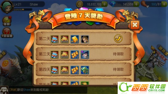 《指环英雄》玩家新手登入前7天,天天都可以领取超值的游戏礼包,礼包内容包含钻石、金币、体力、装备和英雄等,点击右侧领取按钮即可直接领取到角色包里。