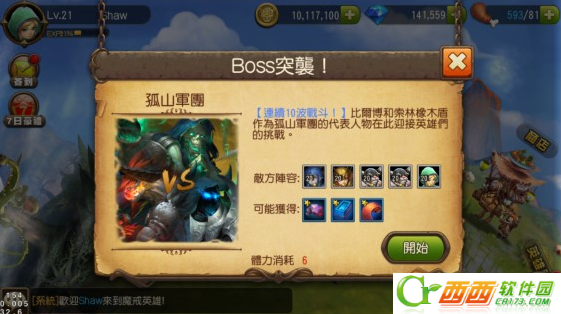 《指环英雄》 游戏里的Boss突袭系统,这是一个获取游戏稀少材料的地方,该副本共有10波敌人,击败每一波敌人都能获得一定数量的奖励,想全部通关的话一定要多多培养强力的替补英雄。