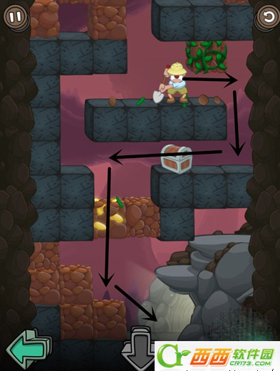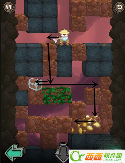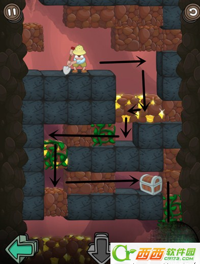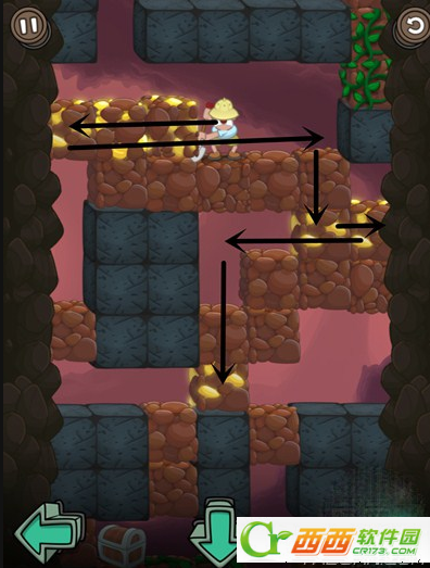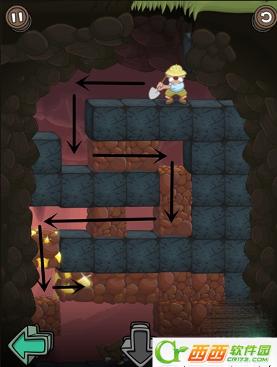 进入到Dig a Way的第1关那我们发现一开始就有金子出现,那么现在我们就要安排老爷爷挖金的路线前行了。
