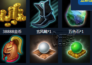 48888金币、浴血铠*1、白玉冠*1、七星剑*1、碎龙牙*1、一转金丹*40、二转金丹*20