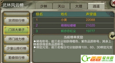 玩家声望值可以在门派大弟子这个排榜榜单上体现,每个职业声望值最多的前三名玩家,除了可以获得橙色紫色称号外,还能每天享有100,60,30的元宝奖励,每天早上4点刷新。